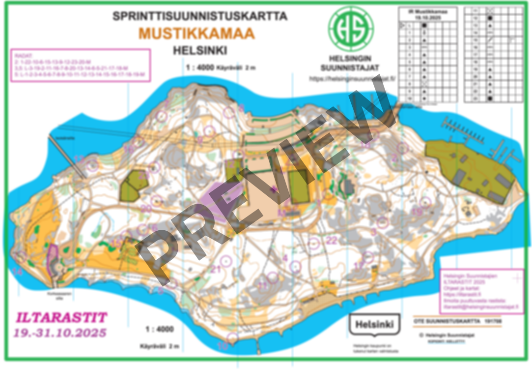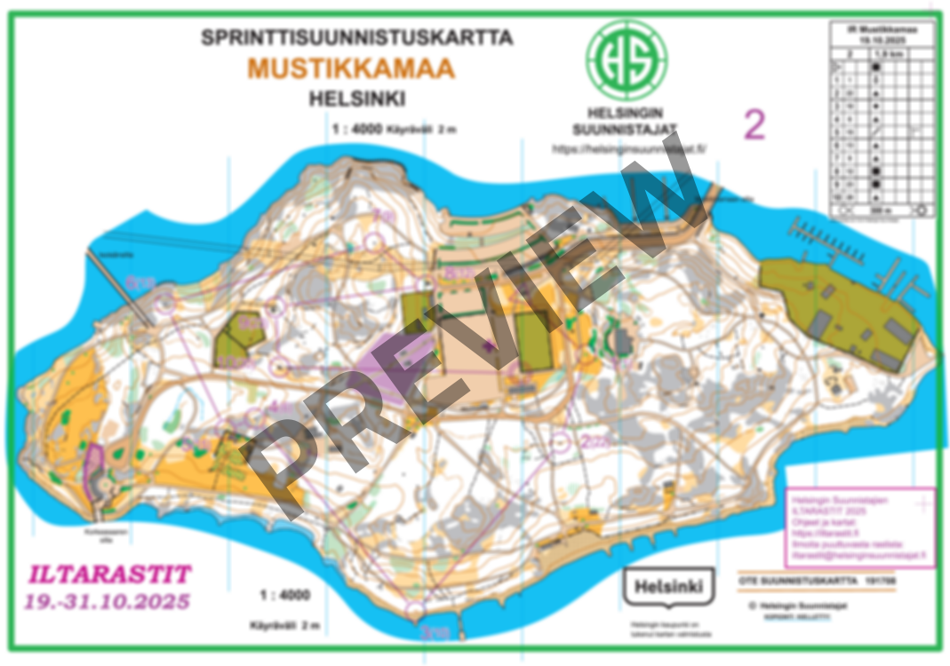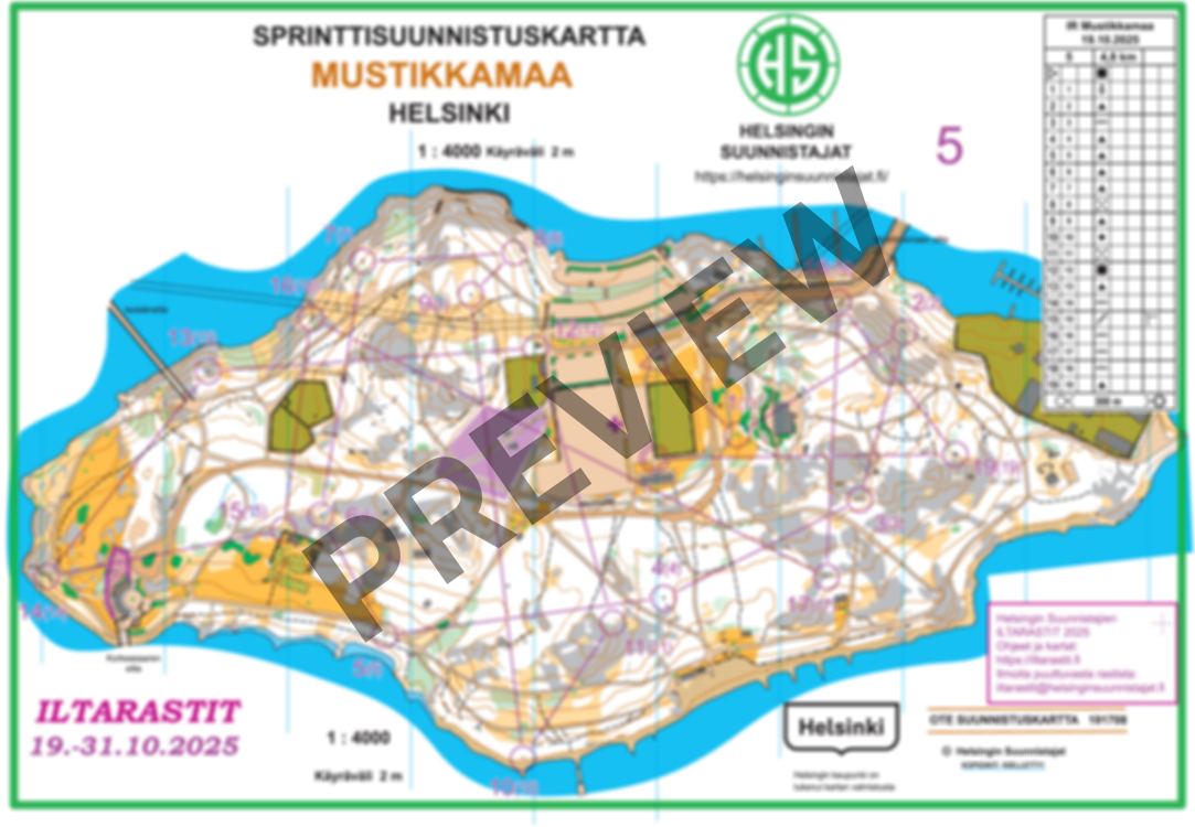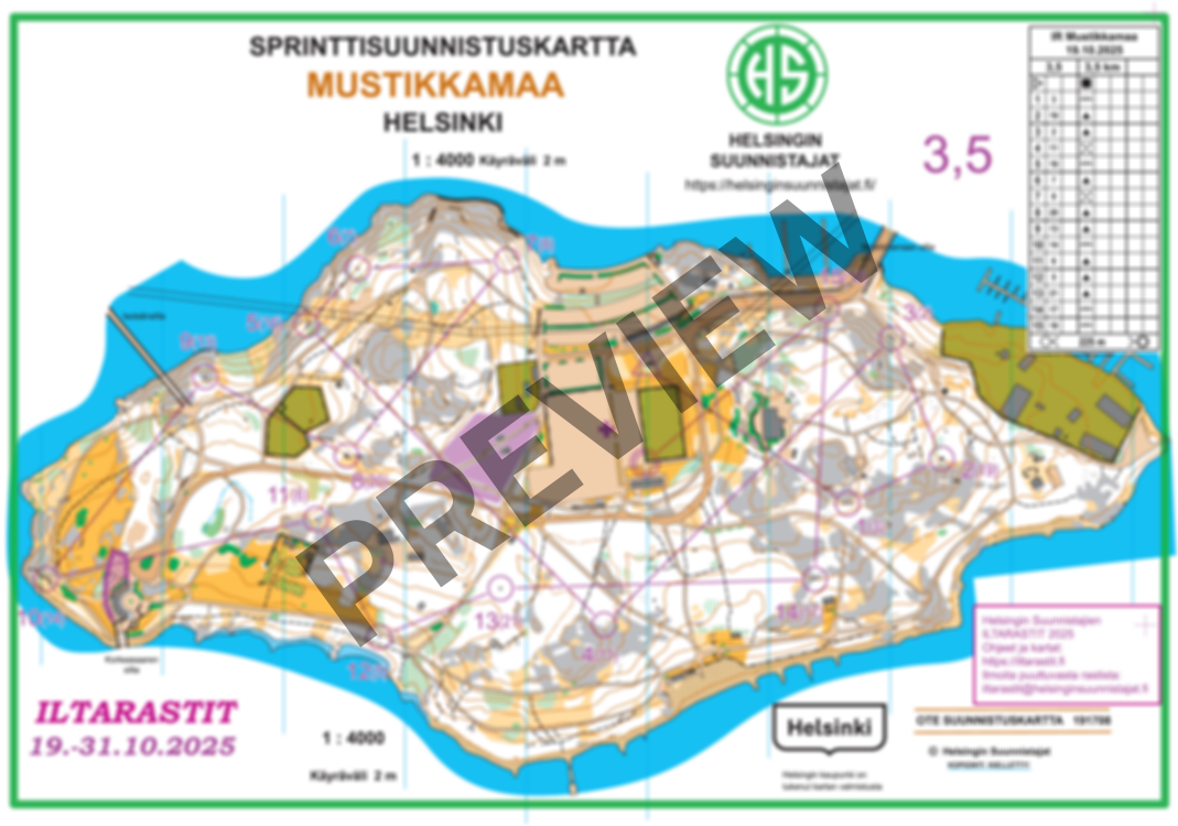 Ratavaihtoehdot: 2 km, 3,5 km ja 5 km. Lisäksi Kaikki rastit -kartta.
