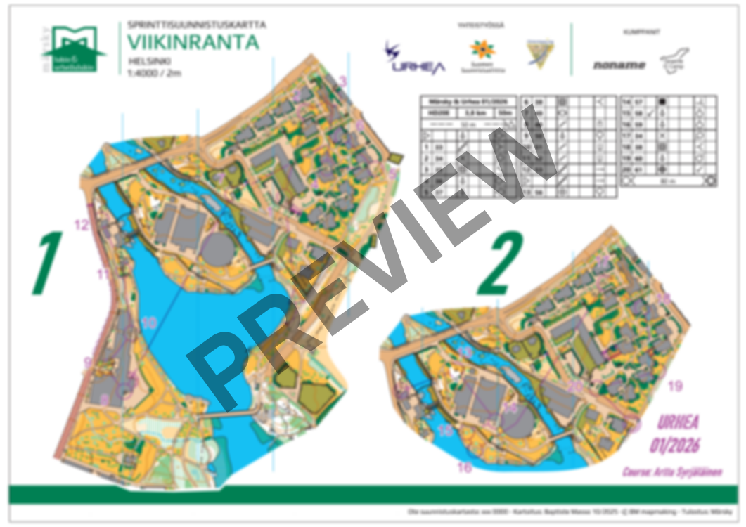 The course is 3,8km and split into two parts (both on the same sheet).There is no flags on the terrain. Course setting by Arttu Syrjäläinen.