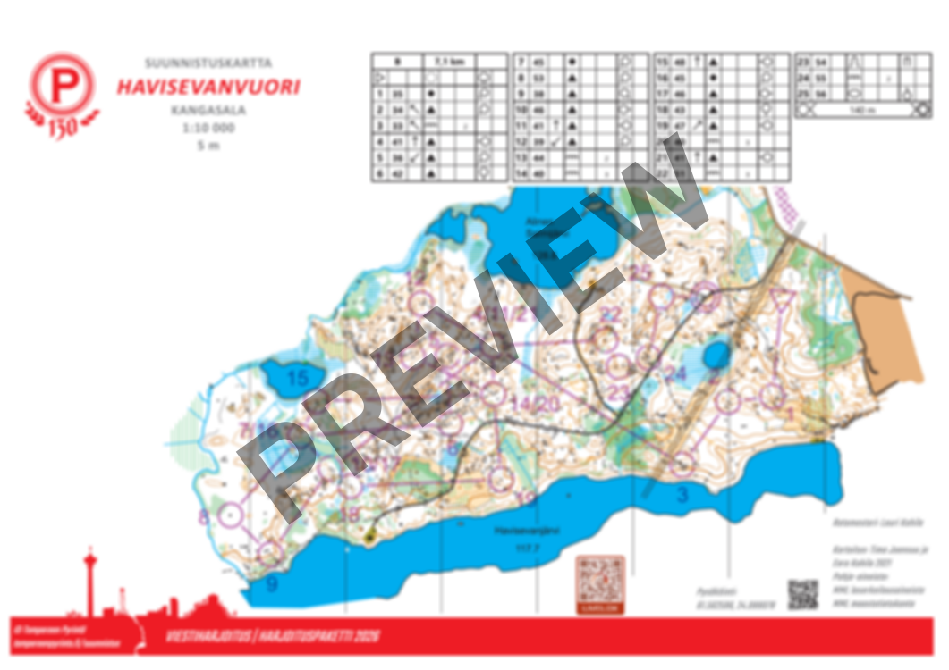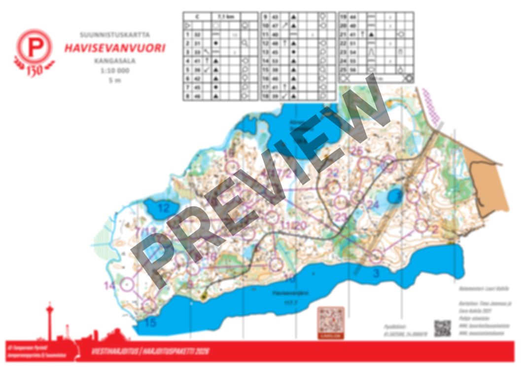 Havisevanvuoren maasto on kulkukelpoisuudeltaan vaihtelevaa kalliomaastoa. Korkeuserot eivät ole merkittävät, mutta maastopohja haastaa paikoin suunnistajan keskittymistä. Tässä harjoituksessa on timanttihajonnat ja sitä on helppo lyhentää jättämällä yhden tai useamman timantin sakaran suunnistamatta.
