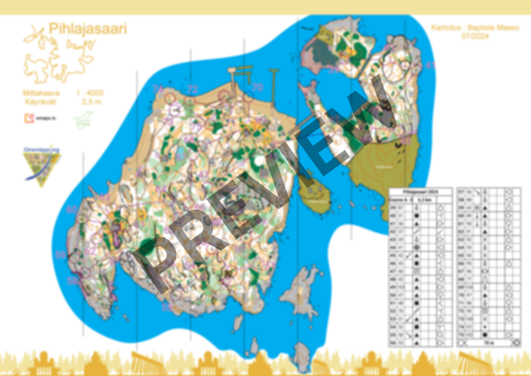 Course is 6,3km with a map flip (3,4km + 2,8km). There is no flags on the terrain. Map is 1/4000 scale.