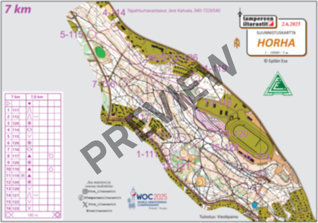 Horhan Iltarastien omatoimirastien kartat itsenäistä tulostamista varten.