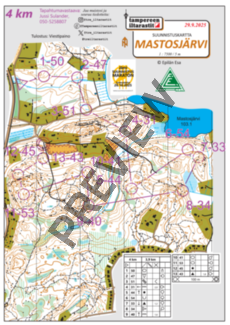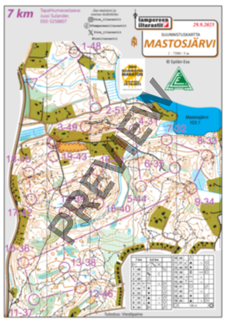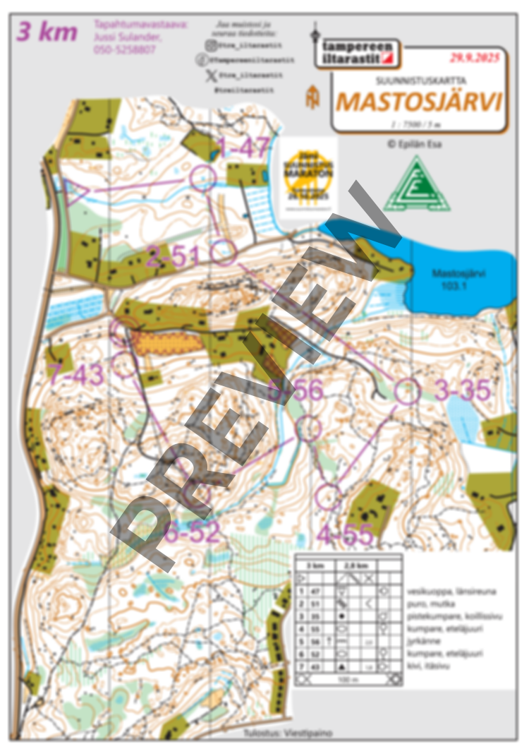 Mastosjärven Iltarastien omatoimirastien kartat itsenäistä tulostamista varten.
