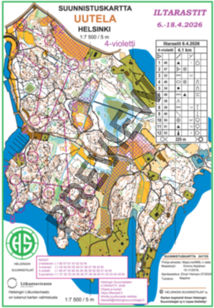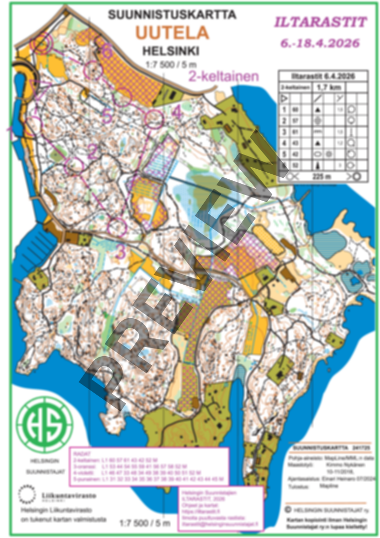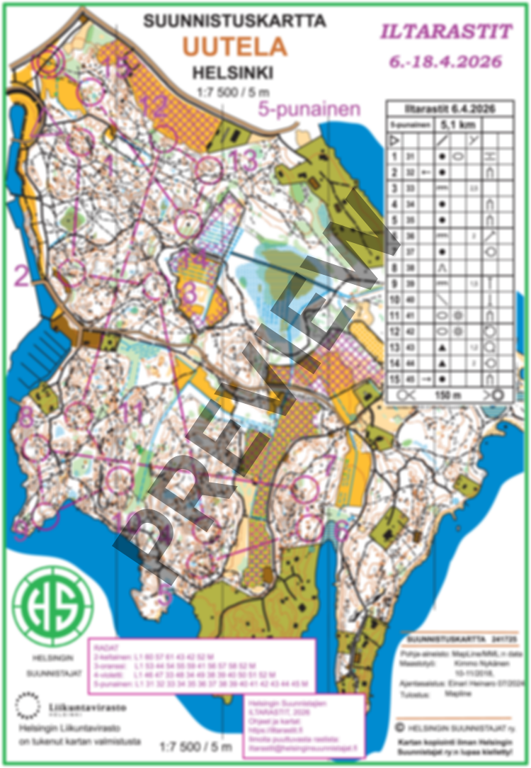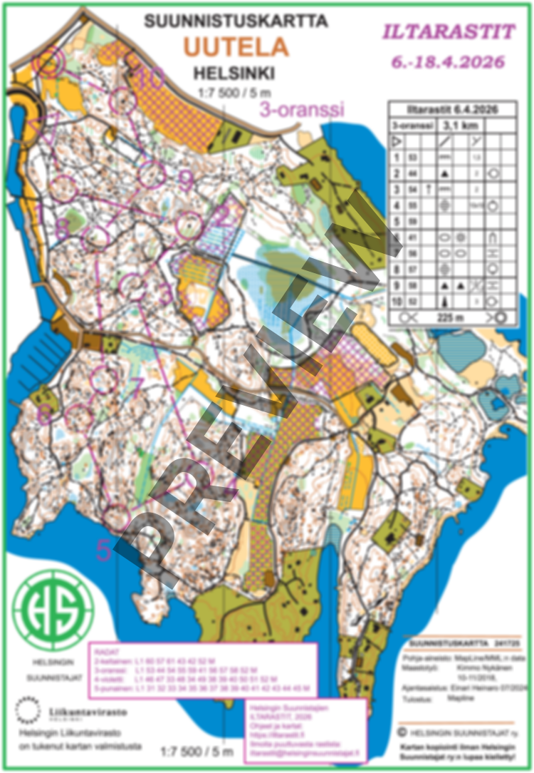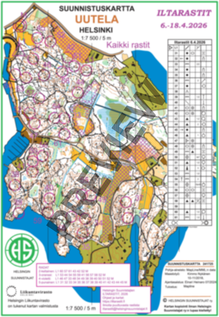 Kaikilla radoilla kartan mittakaava on 1:7 500. Lisäksi saatavilla on tutusti kaikki rastit kartta, mittakaavassa 1:7 500.