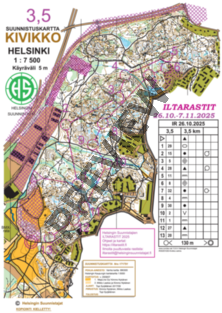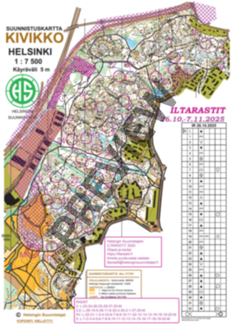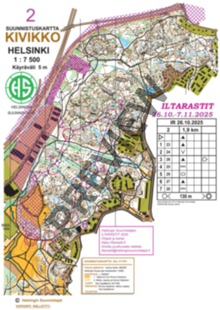 Ratavaihtoehdot: 2 km, 3,5 km ja 5 km. Lisäksi Kaikki rastit -kartta.