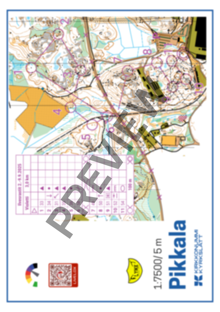 Violetti rata 3.0 km, mittakaava 1:7500.