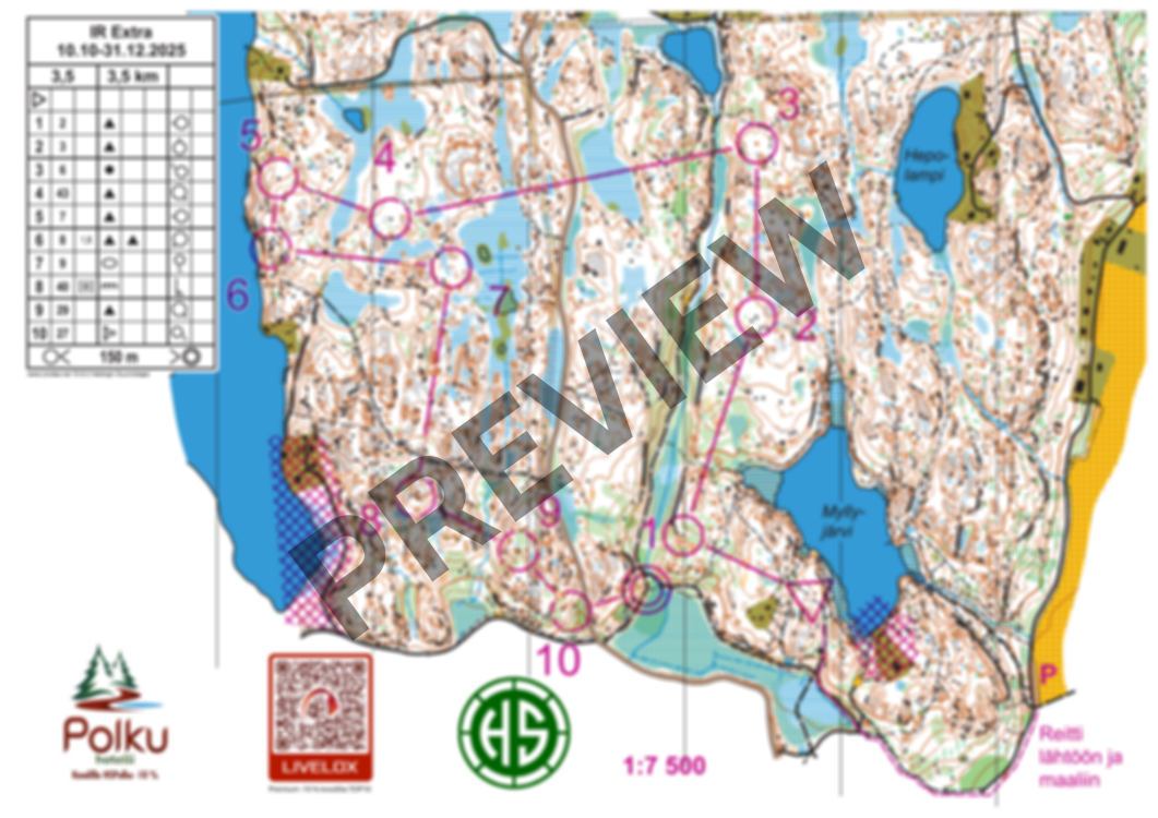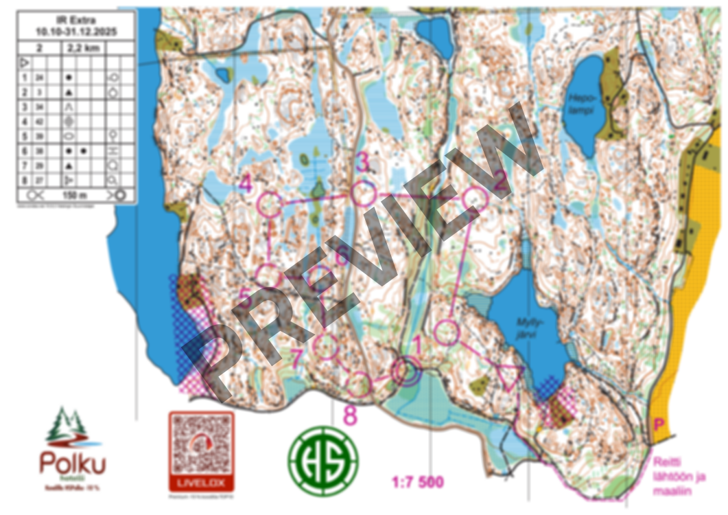 Mittakaava: 2 km ja 3,5 km 1:7 500, 5 km saatavilla sekä 1:7 500 että 1:10 000