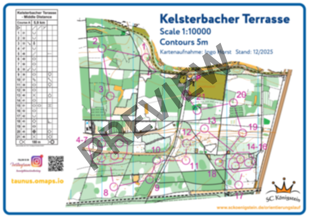 Middle distance with two score areas where controls can be visited in any order (controls 4-7 and controls 14-16). The course is 5,9 km long. There is a shortcut from control 13 to control 21, in this case the course is 3,9 km long. The controls are marked in the terrain till end of February 2026.