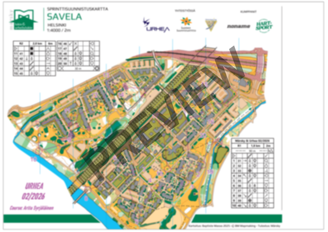The course is 2*2km intervals with artificial barriers. There is no flags on the terrain. Course setting by Arttu Syrjäläinen.