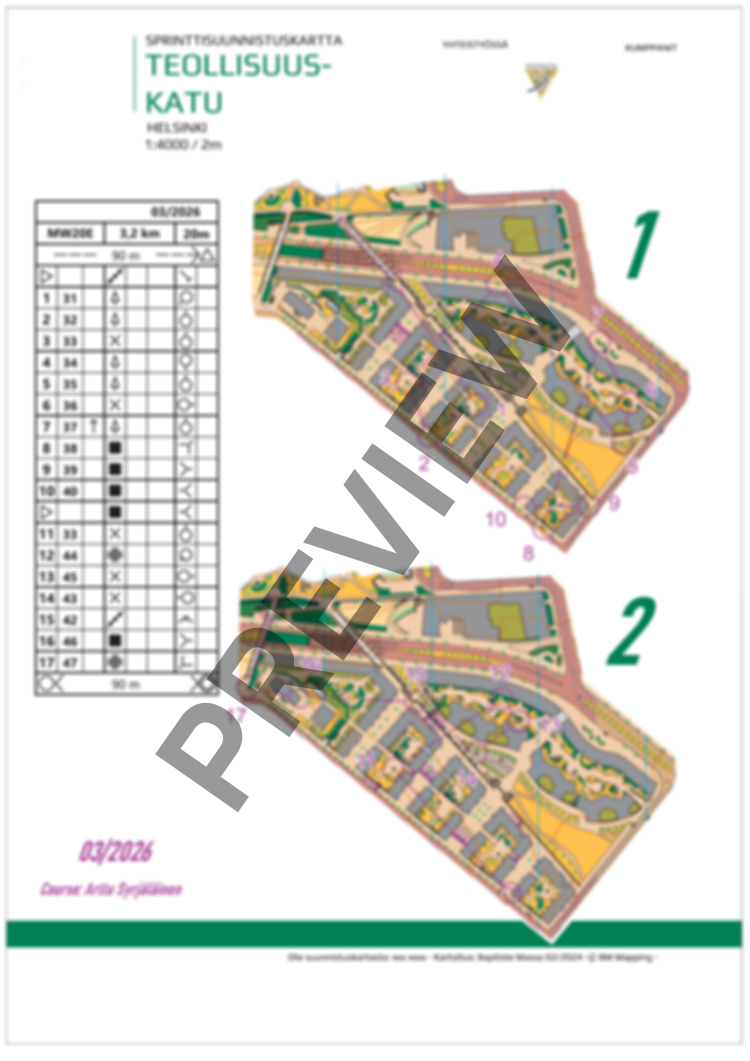 The course is 3,2km. There is no flags on the terrain. Course setting by Arttu Syrjäläinen.