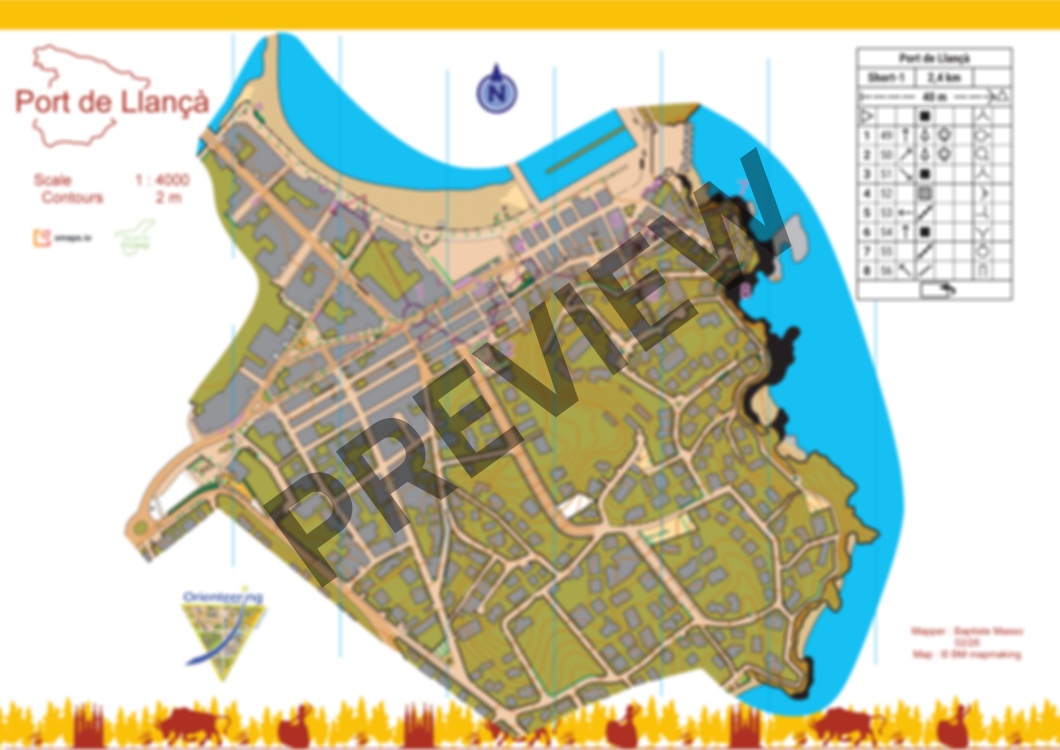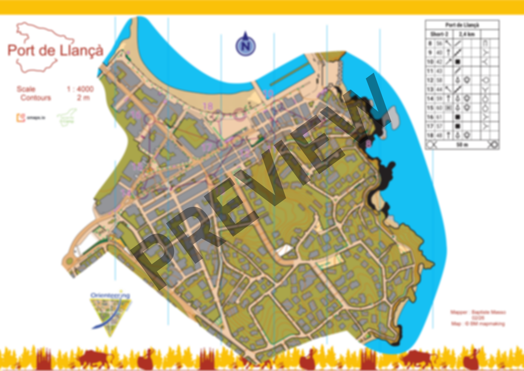 The course is 2,4km (reel) with a flip map over. There is no flags on the terrain.