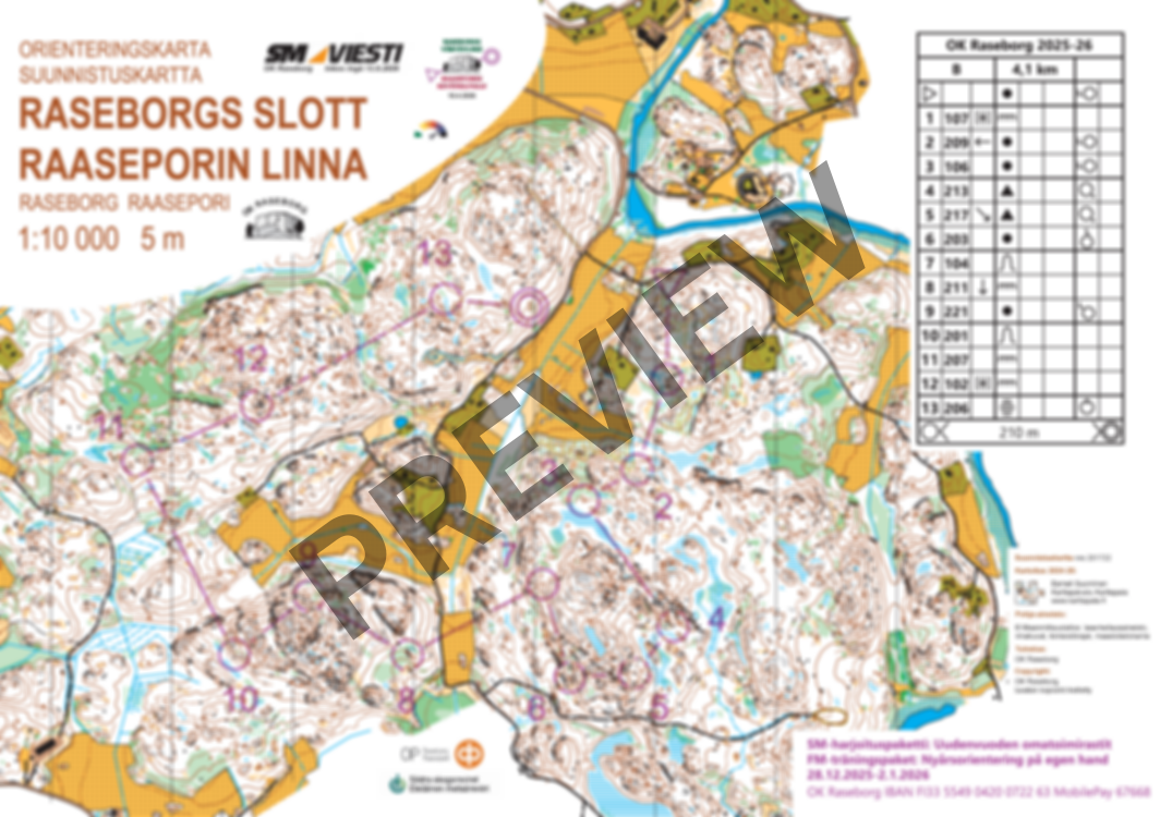SM-viestin 2026 harjoituspaketin omatoimitreeni Snappertunassa Raaseporin linnalla 28.12.25-2.1.26, lisätietoja verkkosivuillamme, myös Livelox toimii. HUOM: harjoitusmaastossa metsästetään la 3.1.26, jolloin maastossa liikkuminen on suunnistajilta kielletty. Sitä ennen tervetuloa treenaamaan huippumaastoon tuoreelle kartalle! HUOM2: treeneissämme ovat käytössä tästä harjoituksesta lähtien uudet hinnat, aikuisten karttamaksu 9 euroa ja lasten ja nuorten 5 euroa. Hintamuutoksen perusteena on SSL:n uusi, seuroilta veloittama maksu, joka nostaa kulujamme vastaavalla tavalla.